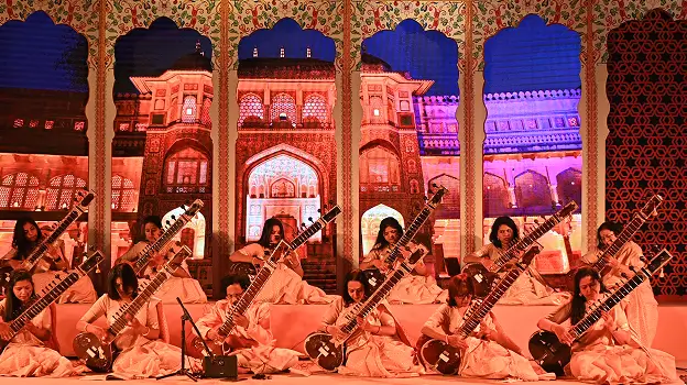 On the pre-eve of Rising Rajasthan 2024, on November 8th, 2024, the Hon'ble Chief Minister hosted a dinner for leading industrialists and investors attending the Rising Rajasthan Global Investment Summit 2024. To infuse the evening with a rich cultural essence, an all-women sitar ensemble, "Divine Strings," was performed on the CM's Residence Lawn.