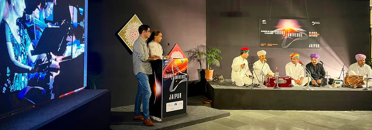 The project brought together Rajasthan’s Manganiyar musicians, the orchestral power of the Dresdner Sinfoniker, and astronomers from Bochum, Alexandria, and Jaipur. Drawing inspiration from pulsars, black holes, and celestial frequencies, the performance blended folk traditions, orchestral arrangements, and immersive visual storytelling.